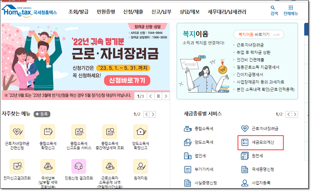 - 세금모의계산 메뉴로 이동합니다.