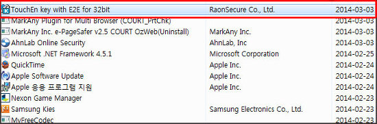 사용자의 컴퓨터에 touchen key with e2e for 32bit 프로그램이 설치가 되어 있을 경우에 삭제를 해야 하는지 알아보도록 하겠습니다.